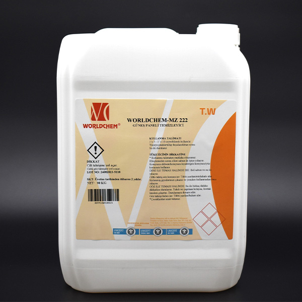 Разтворът за почистване на слънчеви панели MZ 222 се използва за всички видове замърсявания, включително цимент, вар, желязо, мрамор, въглища, боя на прах, растителни масла, животински мазнини, пластмаси и всички видове неорганични остатъци от мръсотия.